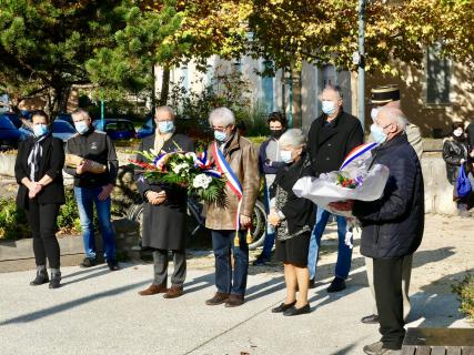 La commémoration de l'Armistice de 1918 s'est déroulée au monument aux morts, en présence des seuls élus et représentants des associations d'ancien combattants du fait de la situation sanitaire. Après les dépots de gerbes par l'Umac (Union des mutilés et anciens combattants), de l'Union nationales des combattants Belledonne et de la municipalité, Yvette Vincent, conseillère municipale, a lu le message national de Geneviève Darrieussecq, secrétaire d'Etat auprès de Florence Parly, ministre des armées.