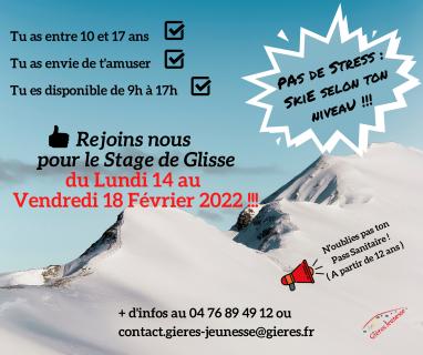 Comme tous les ans, Gières Jeunesse propose pendant les vacances d’hiver aux Giérois de 10 à 17 ans, un stage de glisse à Prapoutel-les-7-Laux.