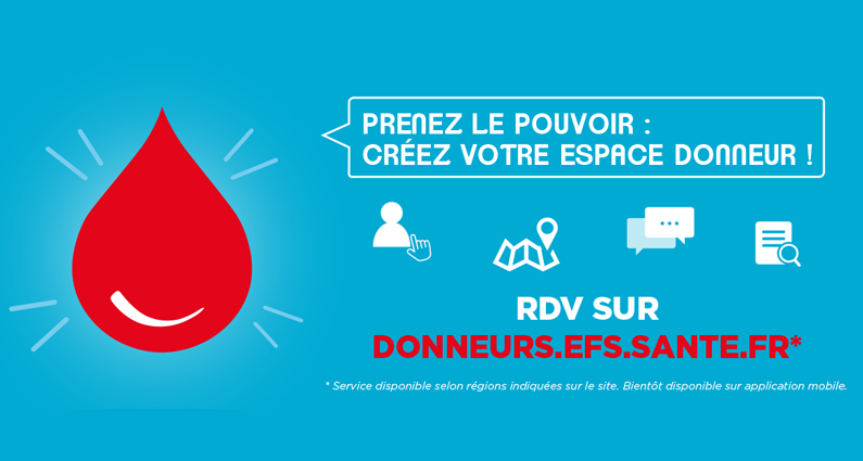 A la salle des fêtes, pour prendre rendez-vous : mon-rdv-dondesang.efs.sante.fr