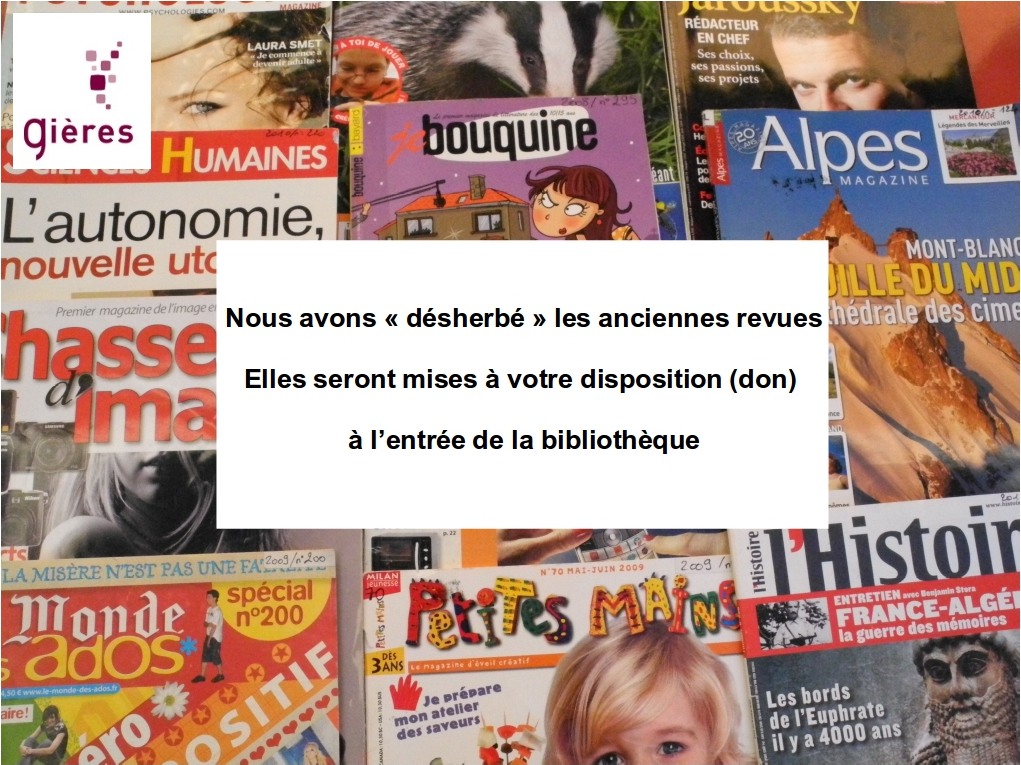 La bibliothèque de gières a désherbé ses anciennes revuies.