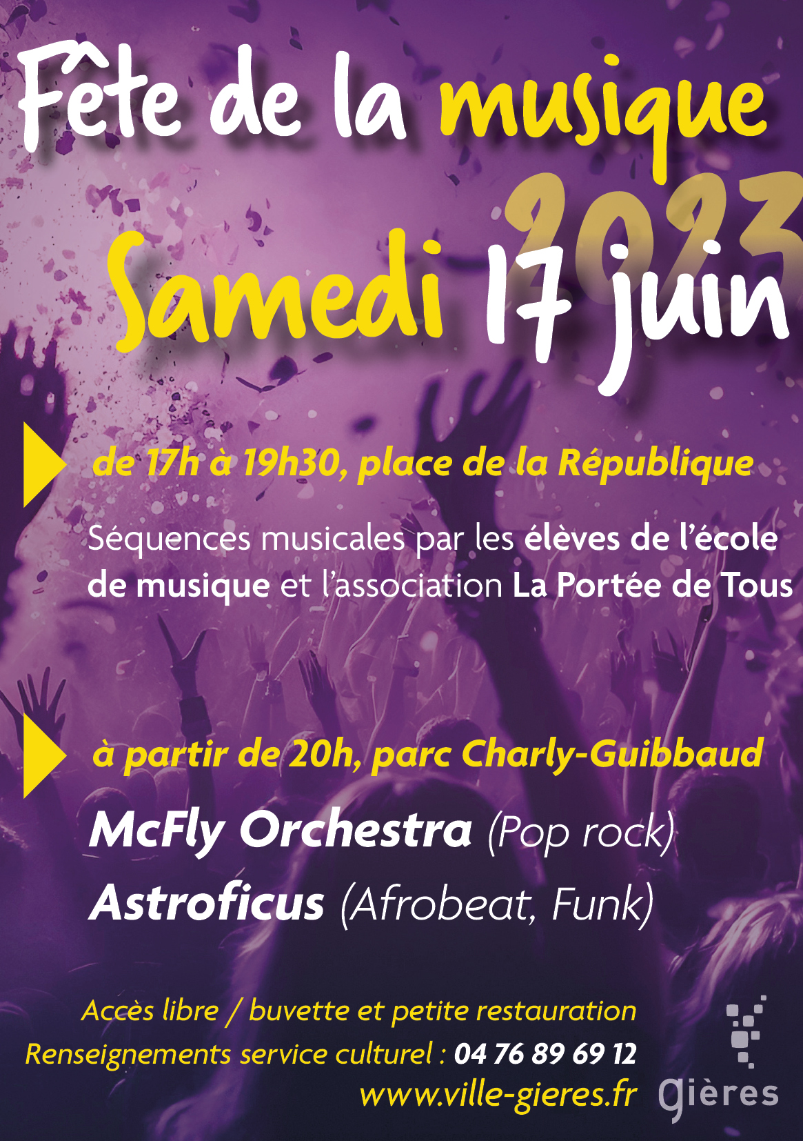 A partir de 20h, parc Charly-Guibbaud : McFly Orchestra (Pop rock) et Astroficus (Afrobeat, Funk)