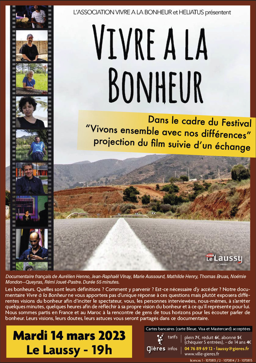 Les bonheurs... Quelles sont leurs définitions ? Comment y parvenir ? Est-ce nécessaire d’y accéder ? Notre documentaire Vivre à la Bonheur ne vous apportera pas d’unique réponse à ces questions mais exposera plutôt différentes visions du bonheur afin d’inciter le spectateur, vous, les personnes interviewées, nous-mêmes, à s’arrêter quelques minutes, quelques heures afin de réfléchir à sa propre vision du bonheur et à ce qu’il représente pour lui.
