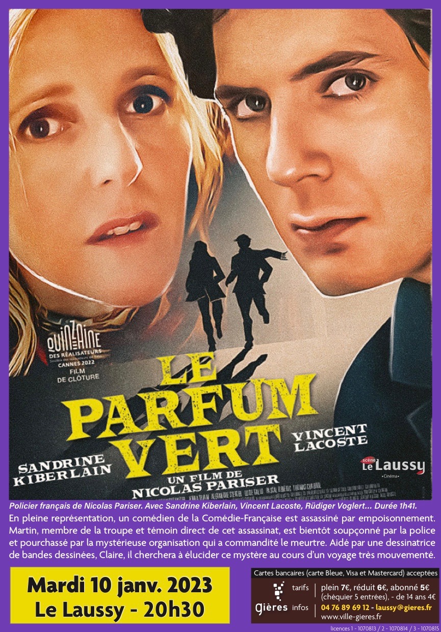 Durée 1h40, tarifs : plein 7€, réduit 6€, abonné 5€ (carte 5 entrées), - de 14 ans 4€, cartes bancaires (carte Bleue, Visa et Mastercard) acceptées.