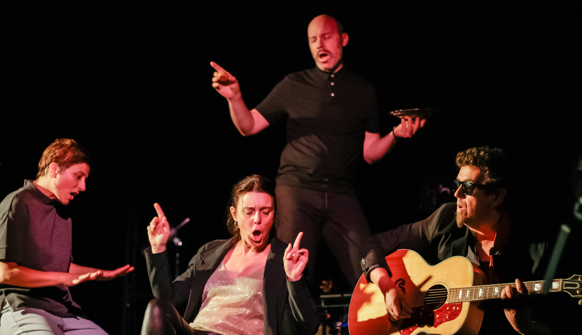C’est une pièce hybride où jeu et musique s’entremêlent sur fond de tubes signés Bowie, réarrangés par le compositeur Erwan Flageul, et interprétés en live.