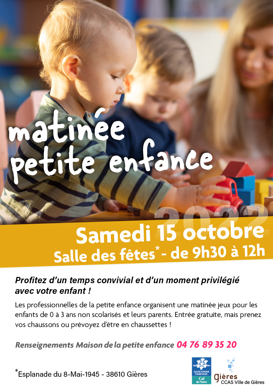 Les professionnelles de la petite enfance organisent une matinée jeux pour les enfants de 0 à 3 ans non scolarisés et leurs parents. Entrée gratuite, mais prenez vos chaussons ou prévoyez d’être en chaussettes !