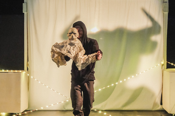 Bien loin des tragédies grecques classiques, voici un spectacle de marionnettes où s’entremêlent un presque héros, une femme rebelle, un enfant à cornes, un marin à deux visages, et un dieu aux grandes mains.