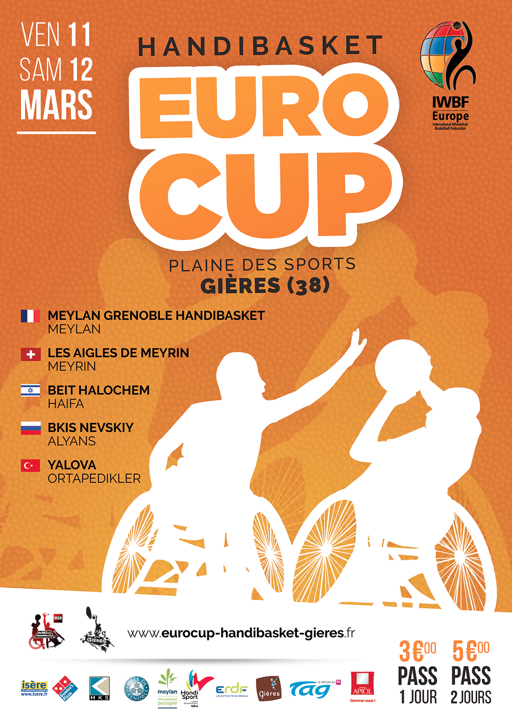 Le vendredi 11 et le samedi 12 mars 2016, le SC Gières Basket et le Meylan Grenoble Handibasket co-organisent un tour préliminaire de la Coupe d’Europe Handibasket (Euroligue 2). Pendant deux jours, férus de basket-ball et amoureux du sport pourront (re)découvrir une activité impressionnante lors d’une compétition d’envergure internationale à la Plaine des Sports de Gières