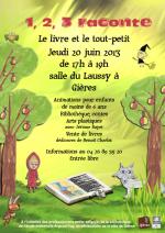 Pour clore le projet, les partenaires invitent parents, grands-parents, assistantes maternelles et enfants à venir partager un moment autour du livre à la salle du Laussy : le 20 juin 2013 de 17h00 à 19h00.