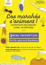 Le 2/06 au marché du vendredi avec Sylvie Cussigh, maire-adjointe à la culture et aux relations internationales, et Mickaël Guiheneuf, conseiller municipal délégué aux mobilités et aux transitions énergétiques et écologiques (annulée)