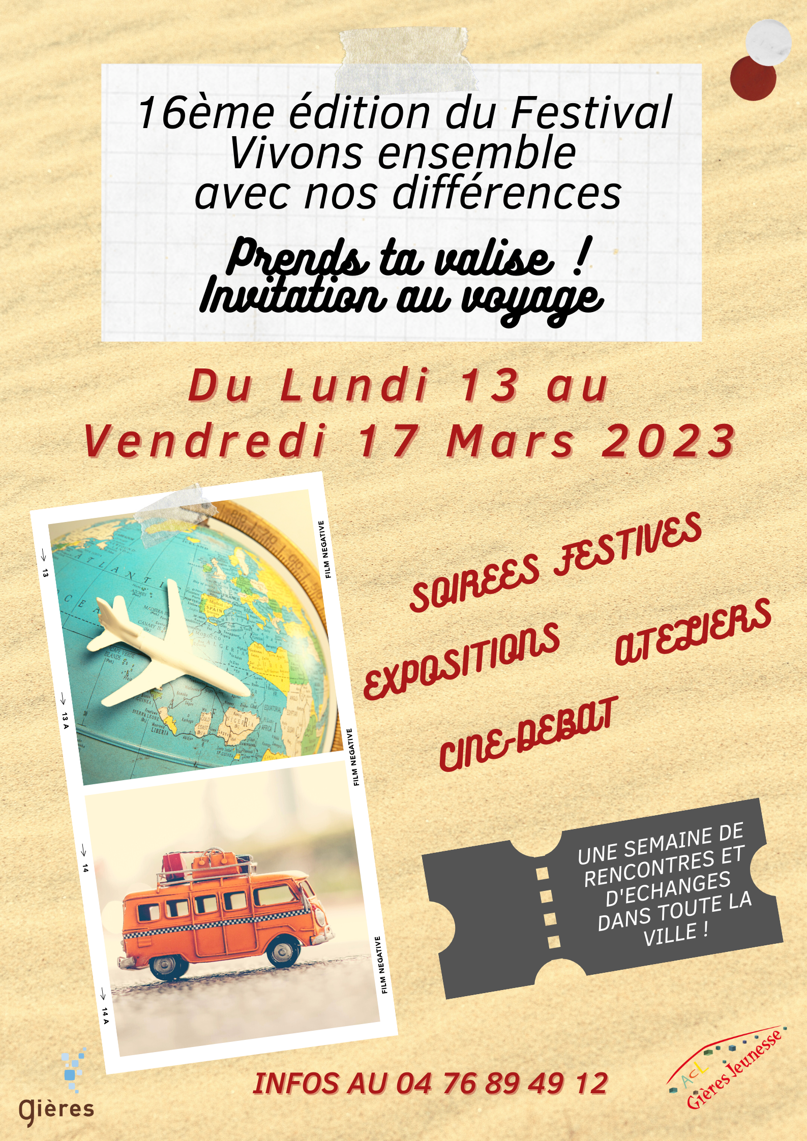 La 16ème Edition du festival "Vivons ensemble avec nos différences" aura cette année pour thème « Prends ta valise : Invitation au voyage », un thème universel et qui se prête à tous les imaginaires !