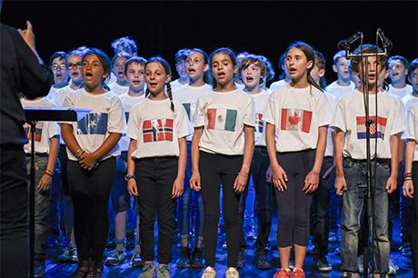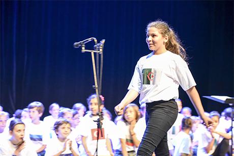 En compagnie du maire Pierre Verri, de la directrice Sandrine Condamin et des enseignantes Yasmine Chaacuoua et Fabienne Marjolin, les enfants, chacun vétu d'un tee-shirt aux couleurs d'un pays, n'ont pas été les dernier à saluer le travail de Claire, au travers d'une émouvante et magnifique prestation ; d'Armstrong de Nougaro à Imagine de John Lennon en passant par des morceaux plus confidentiels — mais non moins opportuns — tirés du répertoire de Grégoire Dune, le concert s'est révélé empreint des valeurs de partage et de tolérance chères à ce fameux parcours citoyen. Une mention particulière au Lily de Pierre Perret, hélas toujours aussi d'actualité, et à la chanson de Calogero, Un jour au mauvais endroit, qui résonne toujours aussi douloureusement de ce drame local d'il y a quelques années, et “bissée” sous les applaudissements des parents.