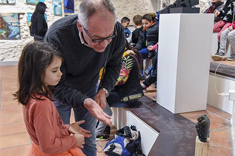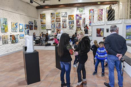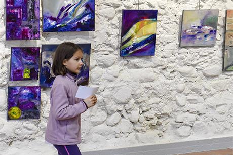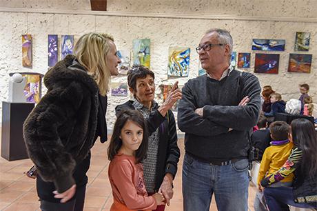 Les CE1 de l'école élémentaire René-Cassin ont rendu visite à d'autres élèves, ceux de Sylvie Coudart et Jeff St-Pierre, professeurs de l'Ecole supérieure d'Art et Design de Grenoble-Valence, qui exposent actuellement à la grange Michal. Les élèves de Geneviève Barthe et quelques parents accompagnateurs ont ainsi été reçus par Dominique Le Pogam, peintre, et Alain Foucault, sculpteur (le 3ème exposant, Vincent Demangeon, n'était pas de permanence ce jour-là), qui leur ont expliqué leurs démarches respectives, leurs sources d'inspiration, leurs techniques, leurs approches... Dominique a ainsi expliqué que ses toiles, très abstraites, pouvaient être interprétées très librement, chacun pouvant y voir ce qu'il désire, tandis qu'Alain a évoqué plus particulièrement les matériaux qu'il utilise (staetite, béton cellulaire...).