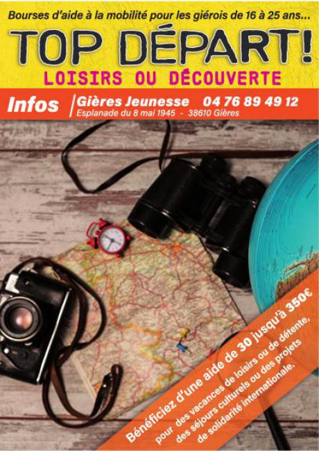 Pour les jeunes de 16 à 25 ans souhaitant partir en vacances en France ou à l'étranger, possibilité de remplir un dossier « Top Départ ».